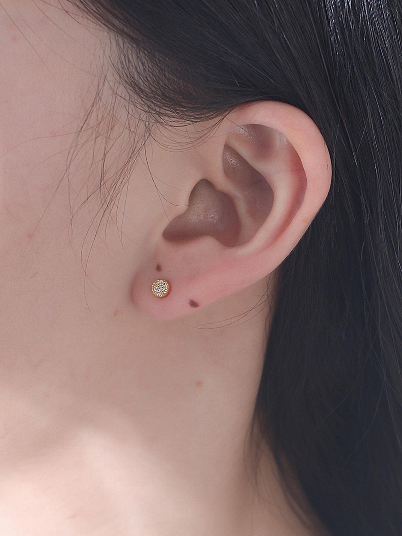 Shein - 1pair Fashionable Cubic Zirconia Round Decor Sterling Silver Stud Earrings For Women For Daily Decoration