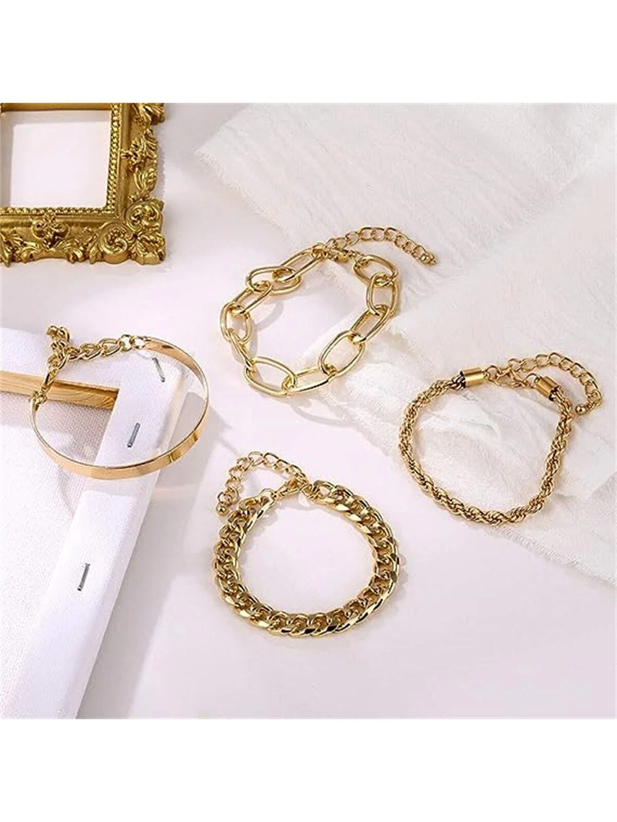 Shein - Punk style bracelet adjustable fashion chain Paper clip thick flat chain women's jewelry set 4 pieces